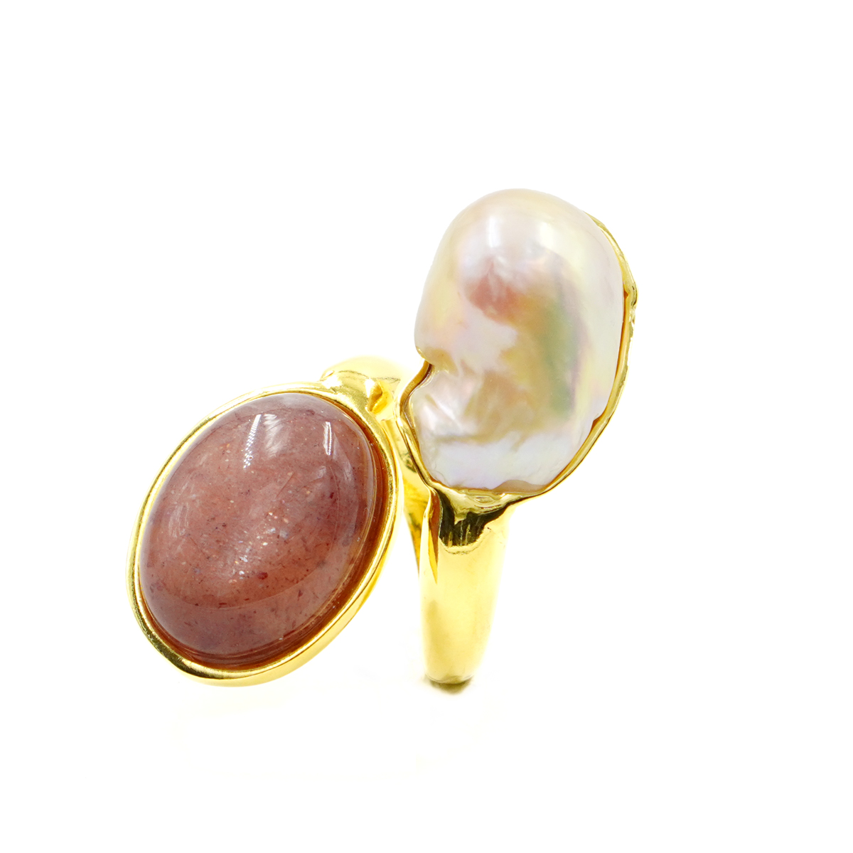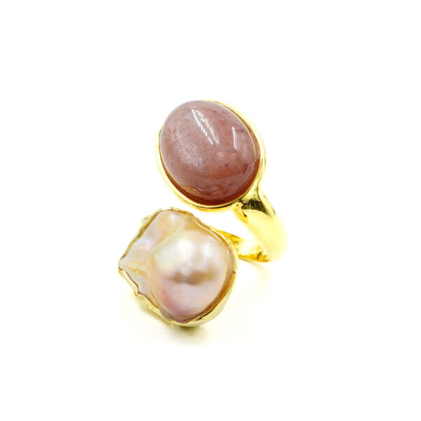 Anello Contrarier Argento con perla, pietra di Luna – Dorato