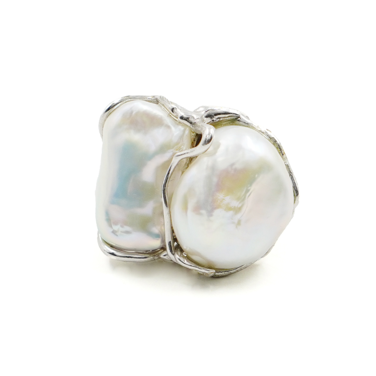 Anello Argento con perle barocche piatte – Rodiato