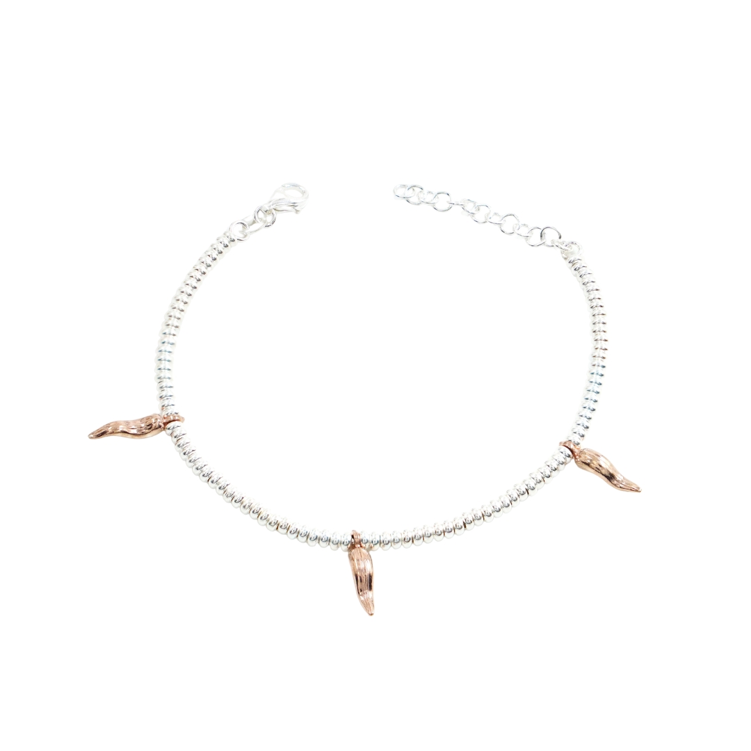 Bracciale in argento con rondelle e cornetti portafortuna, Argentato e Rose’