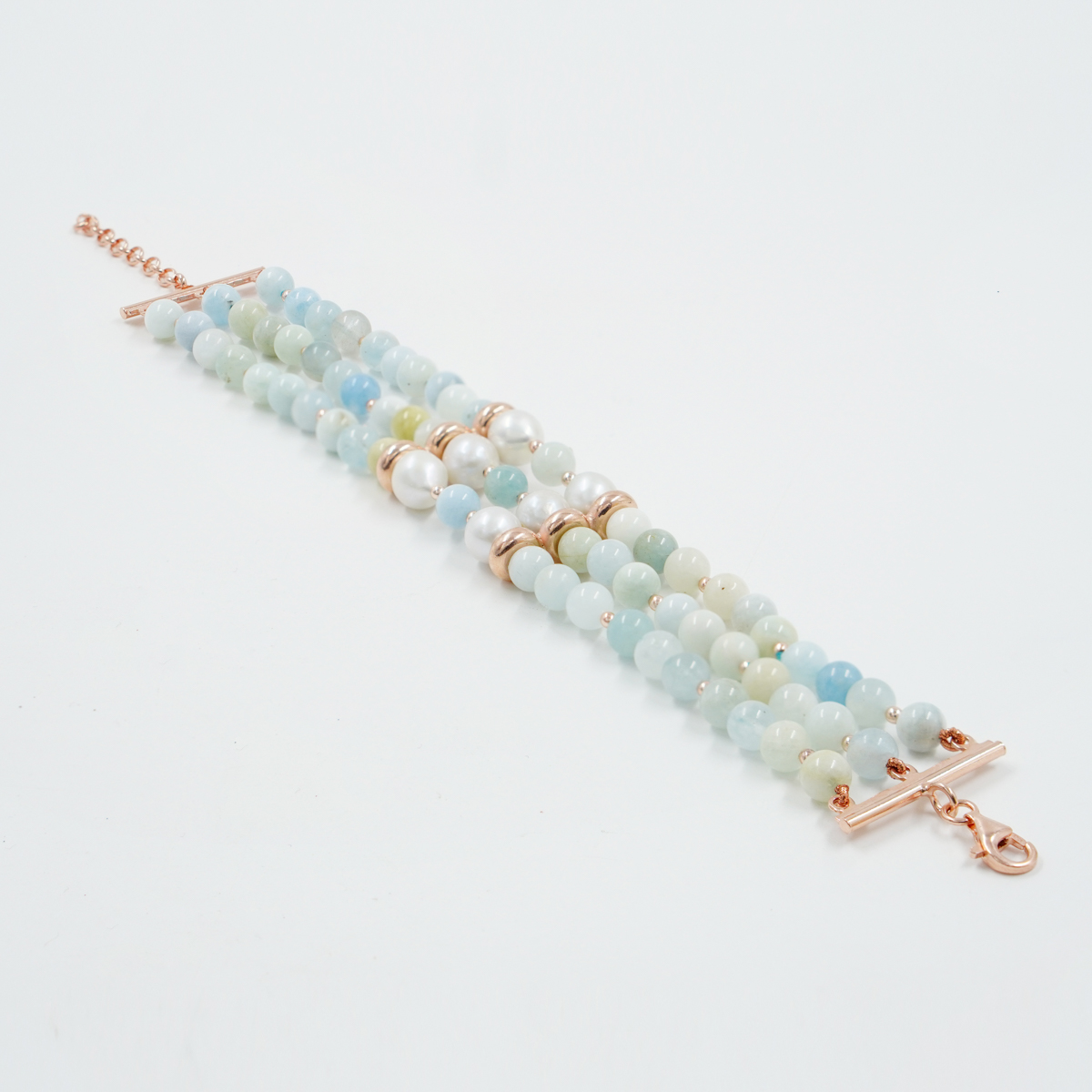 Bracciale Multifilo in acquamarina, perla, chiusura in argento rosè - BRA1840