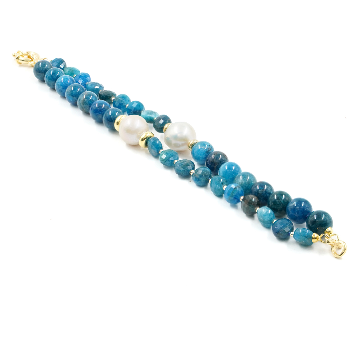 Bracciale Multifilo in apatite, perla, chiusura in argento dorato