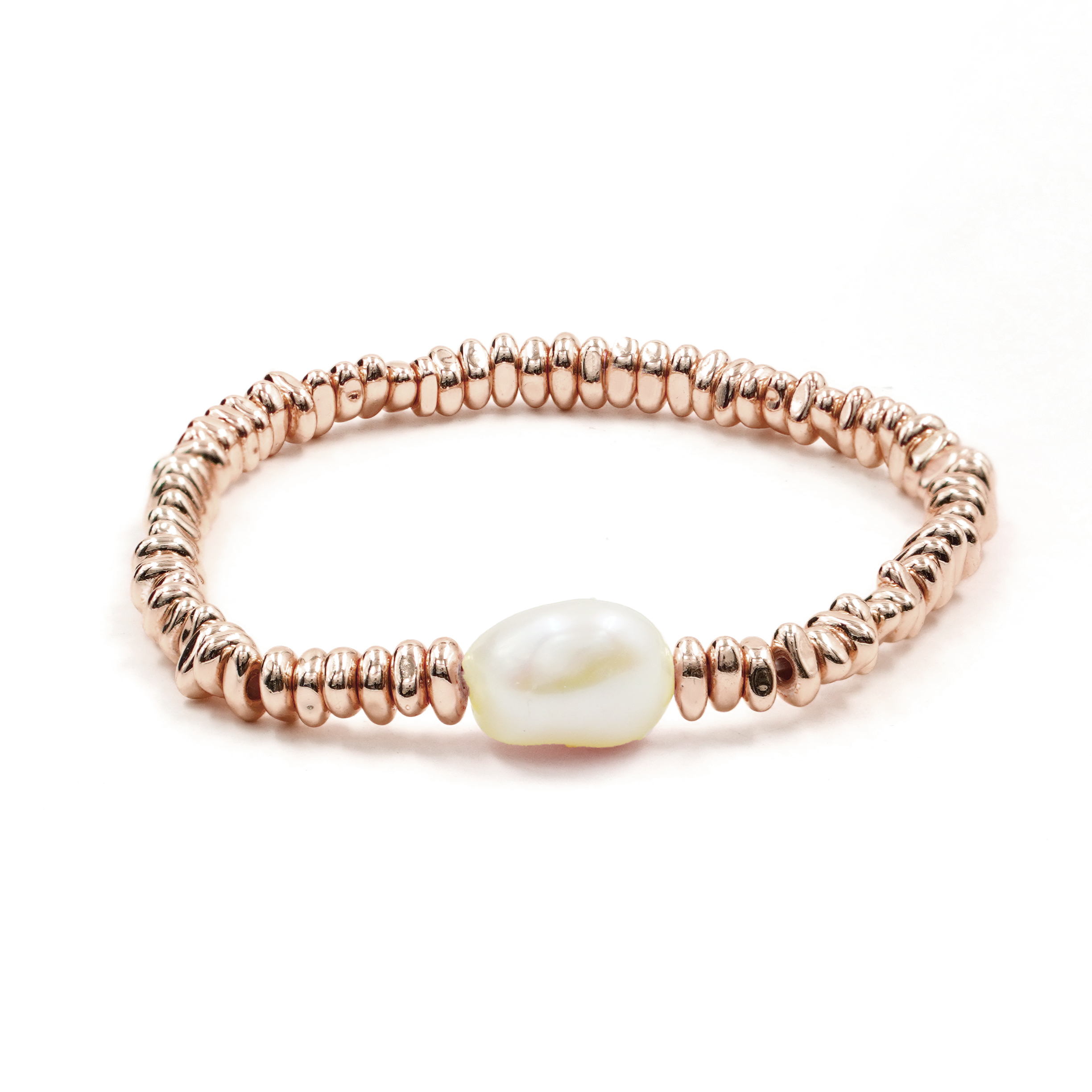 Bracciale Elastico ematite chips rosè e perla