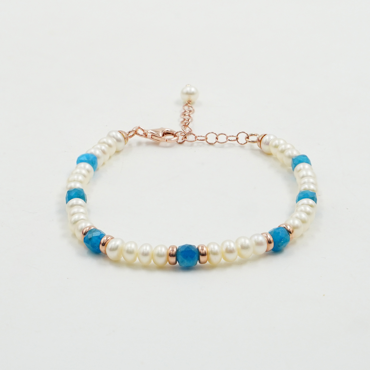 Bracciale in perle e apatite, chiusura argento rosè