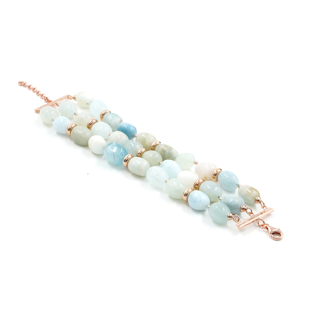 Bracciale Multifilo in acquamarina, chiusura in argento rosè