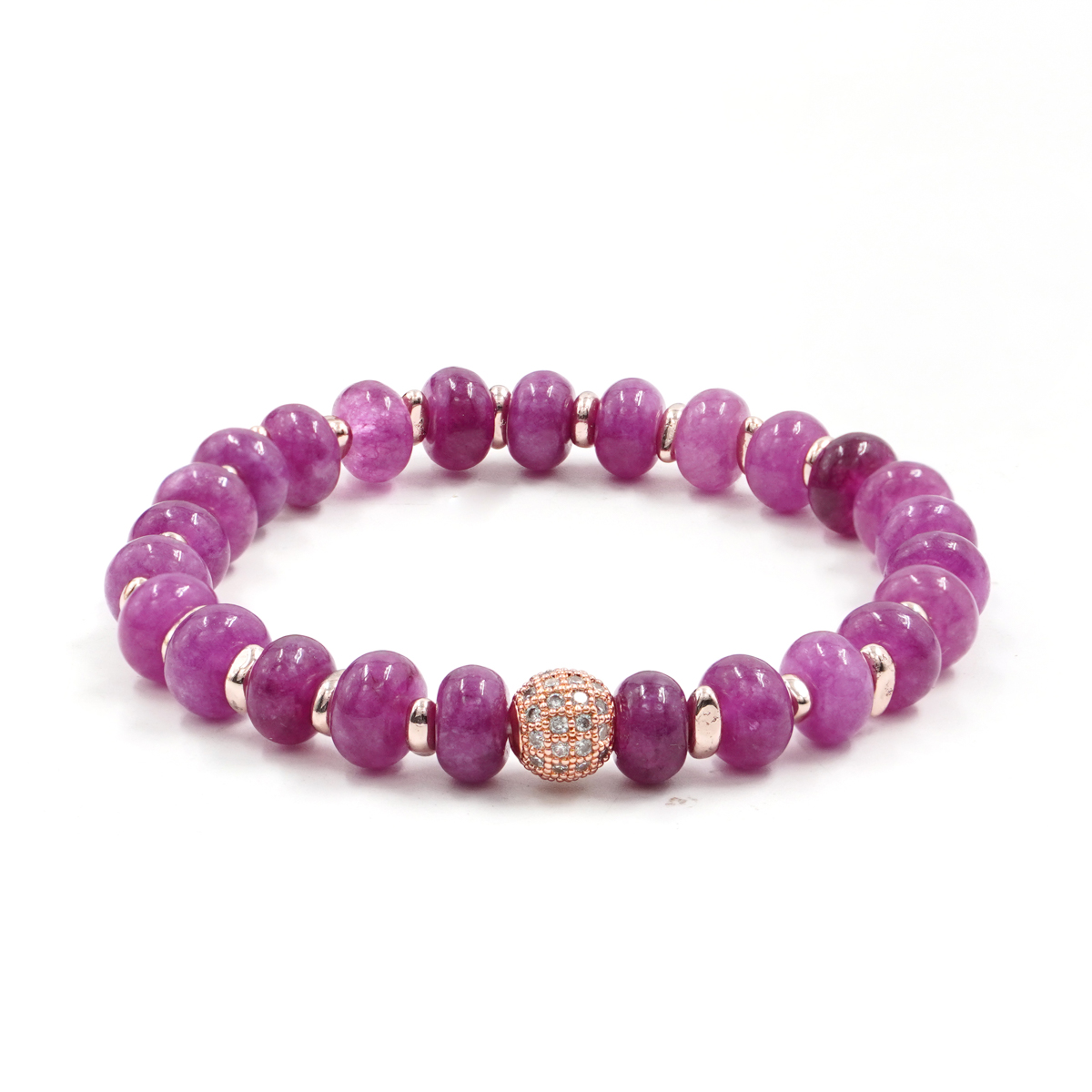 Bracciale Elastico in giada rubino e sfera zirconata