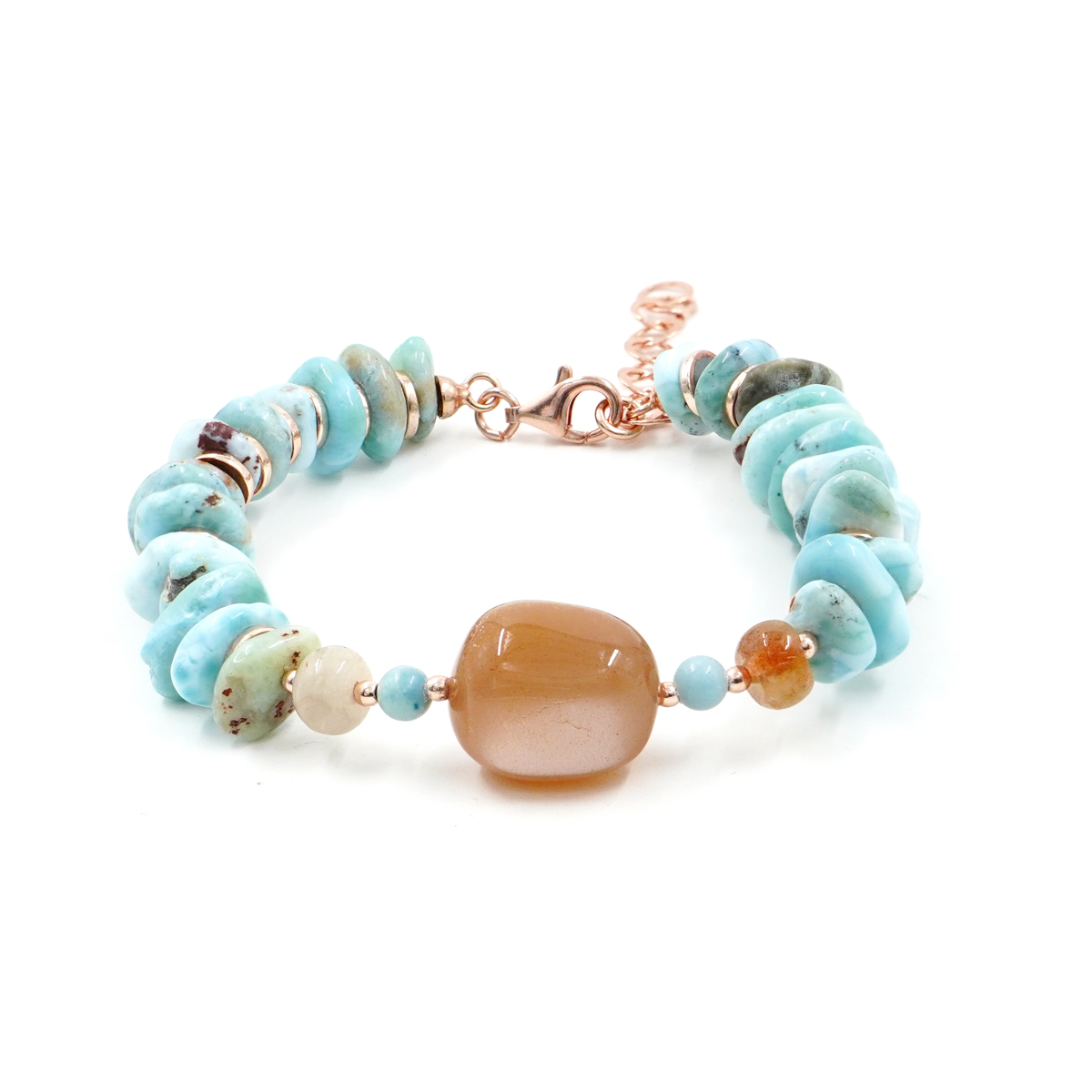 Bracciale in larimar, pietra del sole, chiusura in argento rosè
