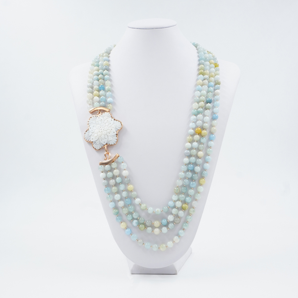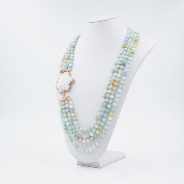 Collana in acquamarina multicolor, cammeo montato su chiusura in argento rosè