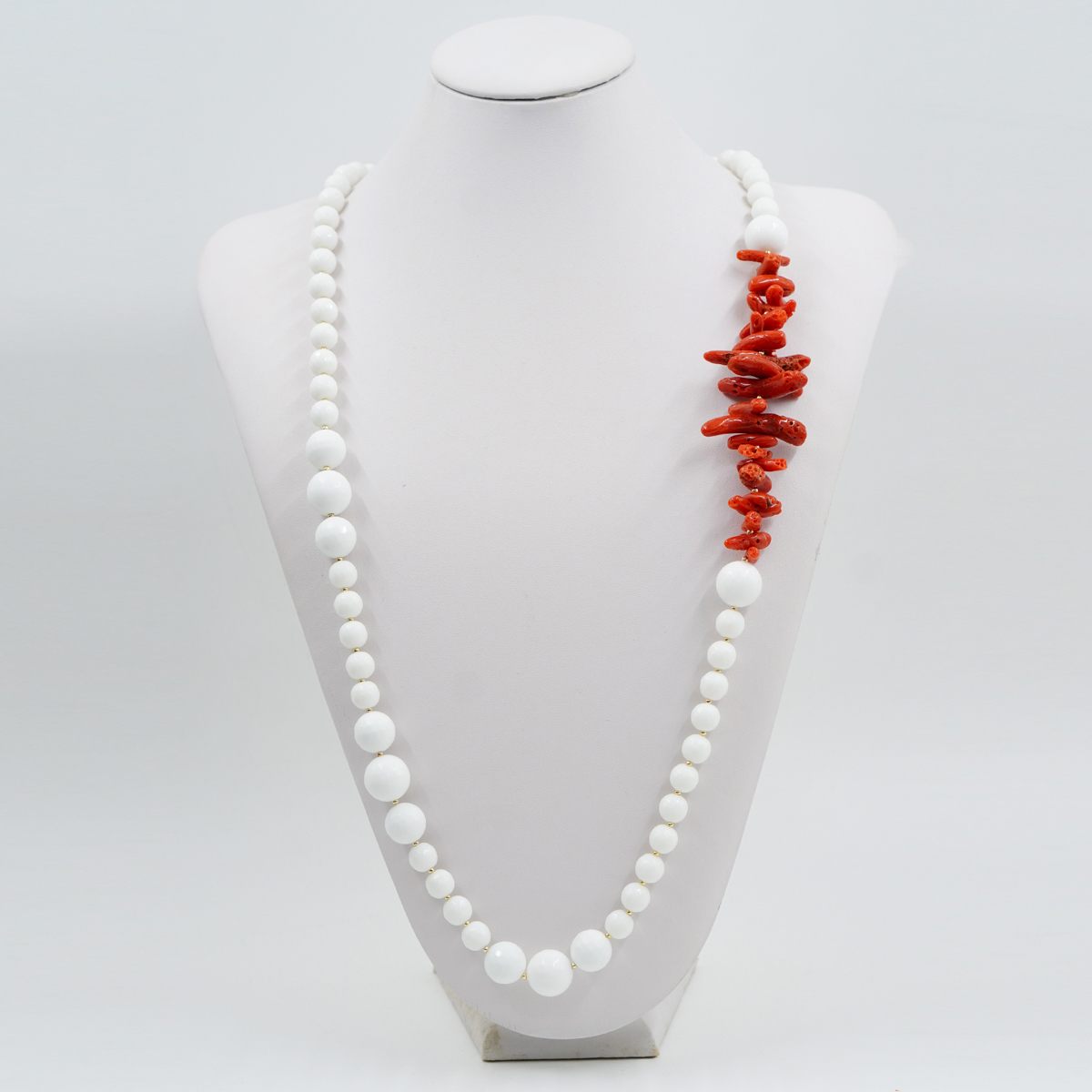 Collana in agata bianca, corallo, chiusura in argento dorato