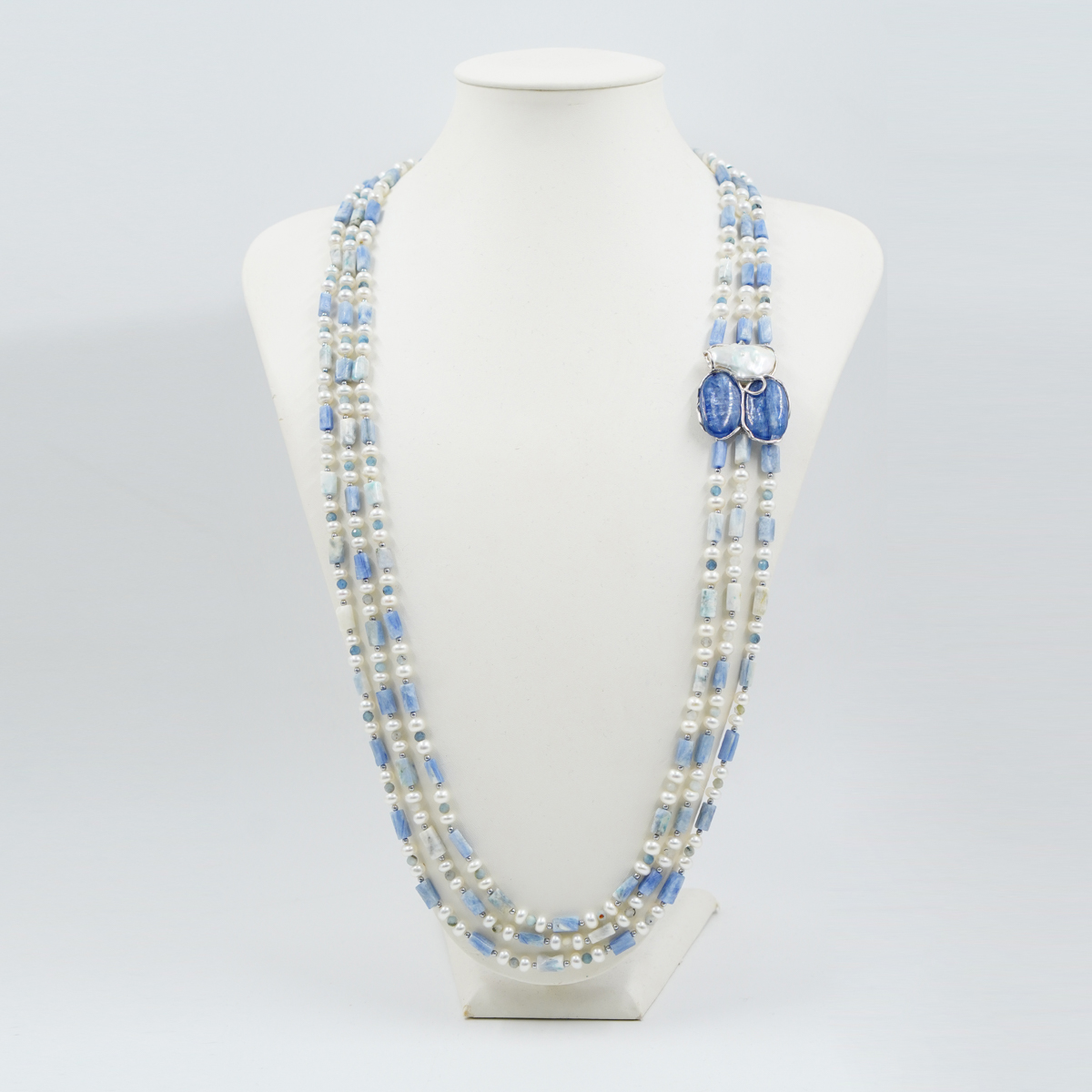 Collana in cianite, perle, chiusura argento rodiato
