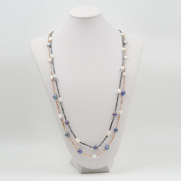 Modello 01: Grigio&Nero – Ematite: 2mm, 2,5mm Perla: ~8mm, ~9mm [4] Modello 02: Rosè&Nero – Ematite: 2mm, 2,5mm Perla: ~8mm, ~9mm [14] Modello 03: Grigio&Rosè – Ematite: 2mm, 2,5mm Perla: ~8mm, ~9mm [13]