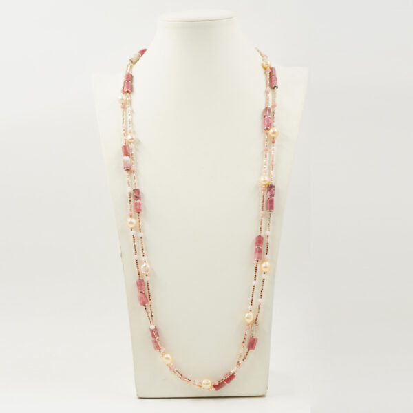 Collana ematite, rodocrosite, perla, opale, chiusura argento rosè