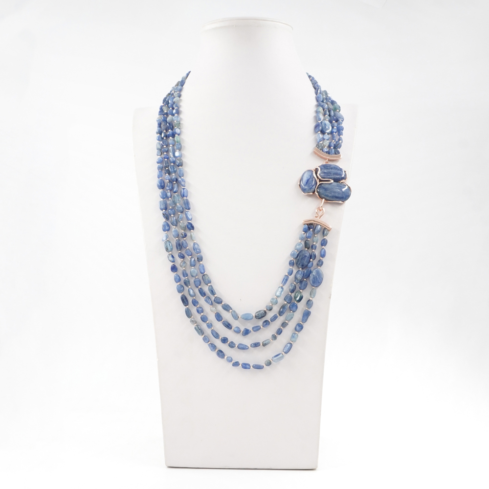 Collana in cianite, chiusura argento rosè