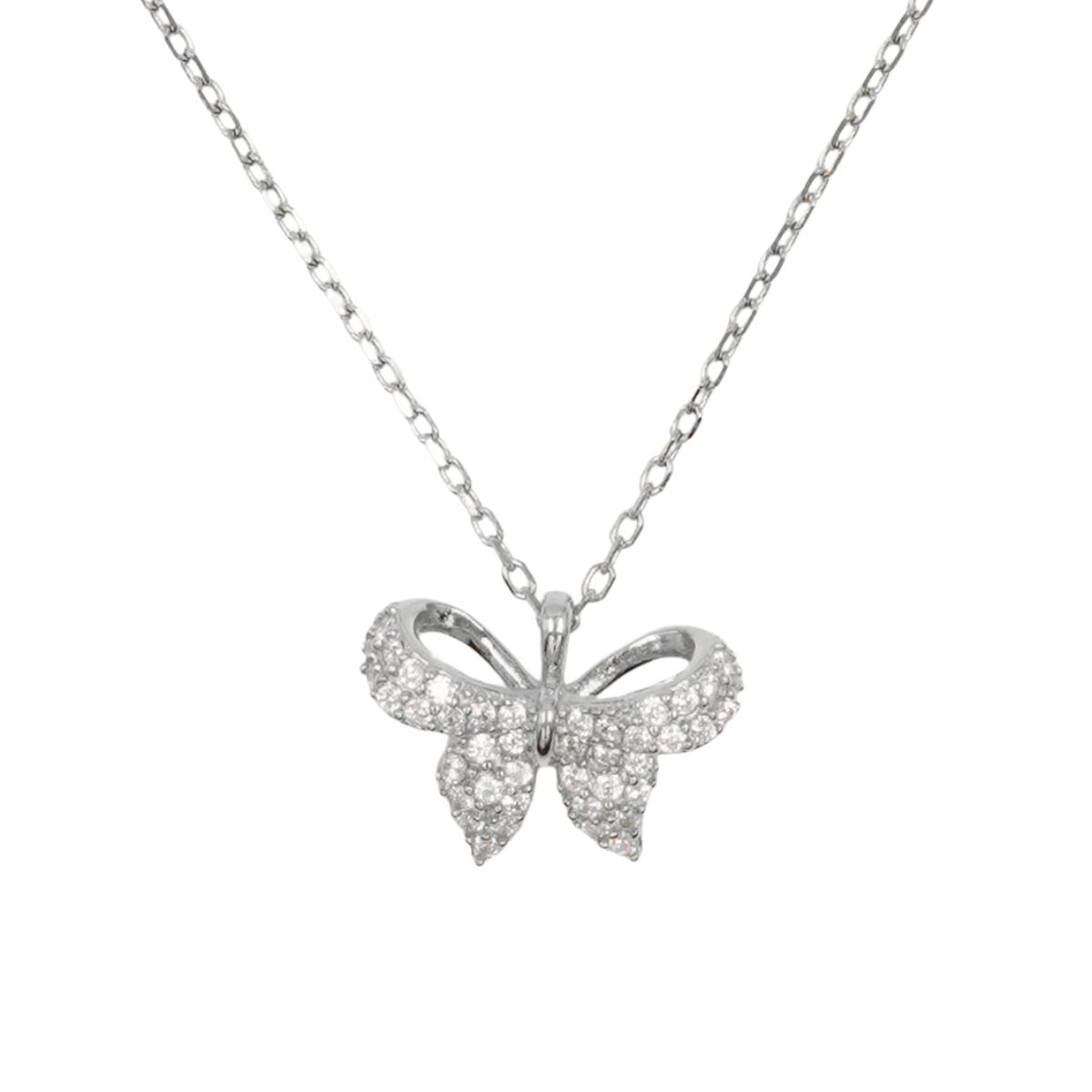 Collana Argento fiocco con zirconi – Rodiato