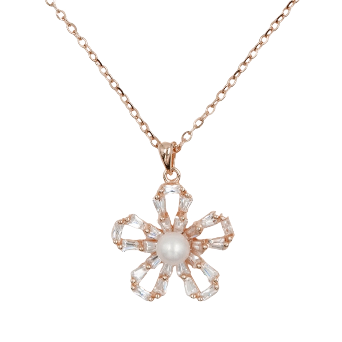 Collana Argento fiore con zirconi e perla – Rosè
