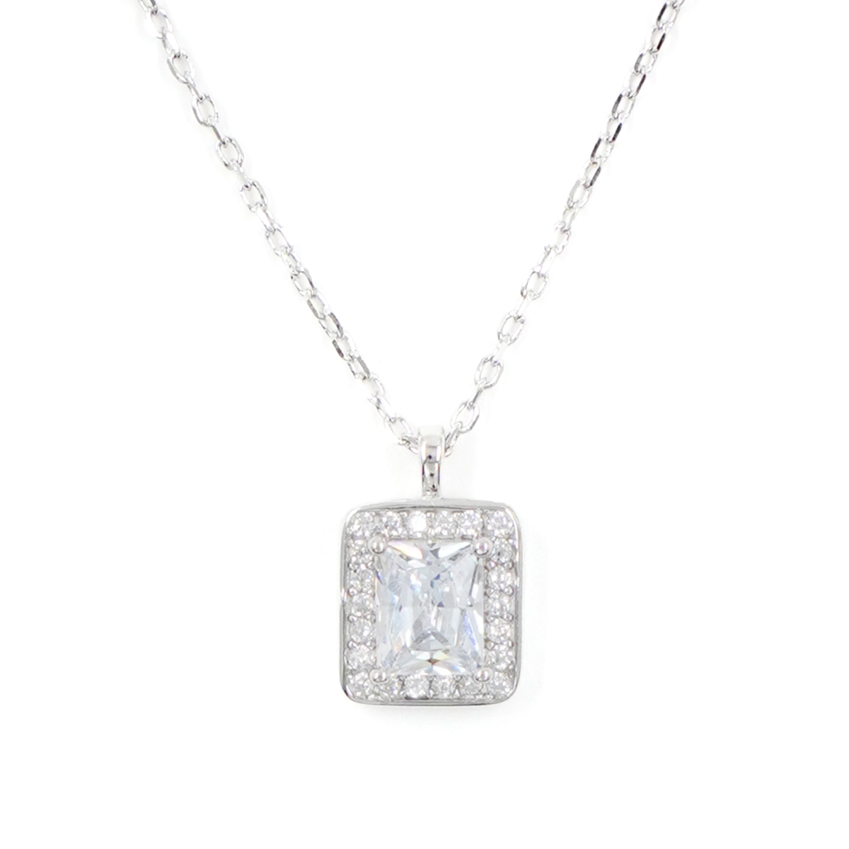 Collana Argento con zircone rettangolare – Rodiato