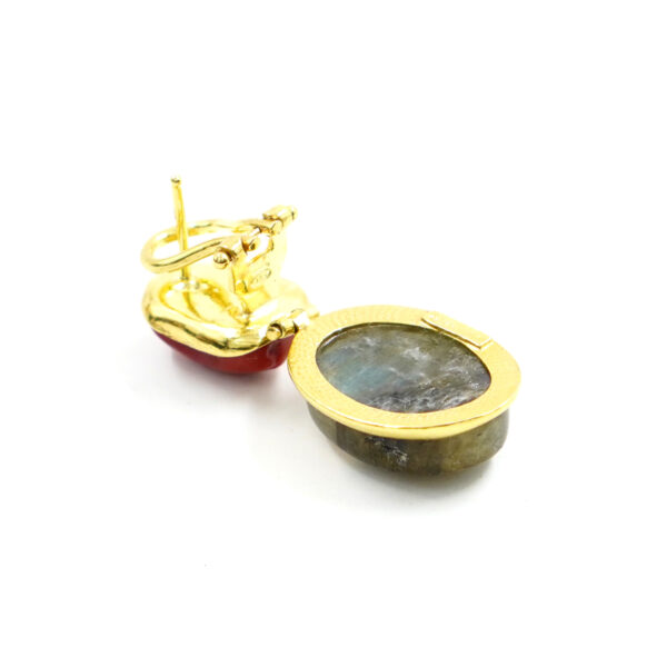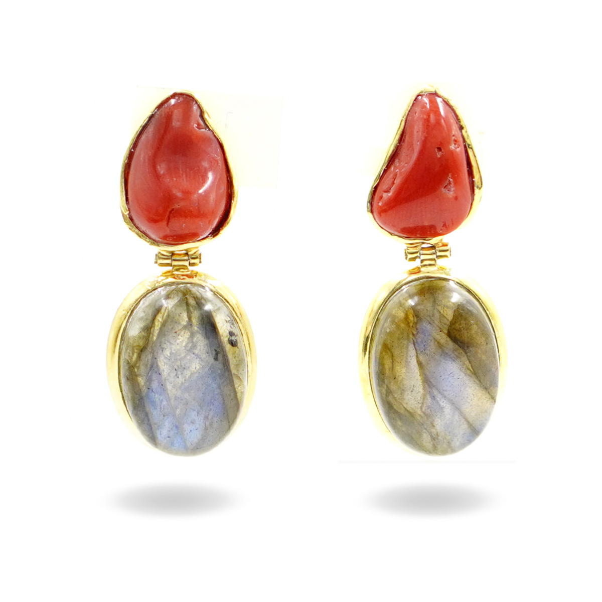 Orecchini Argento con Corallo, Labradorite – Dorato