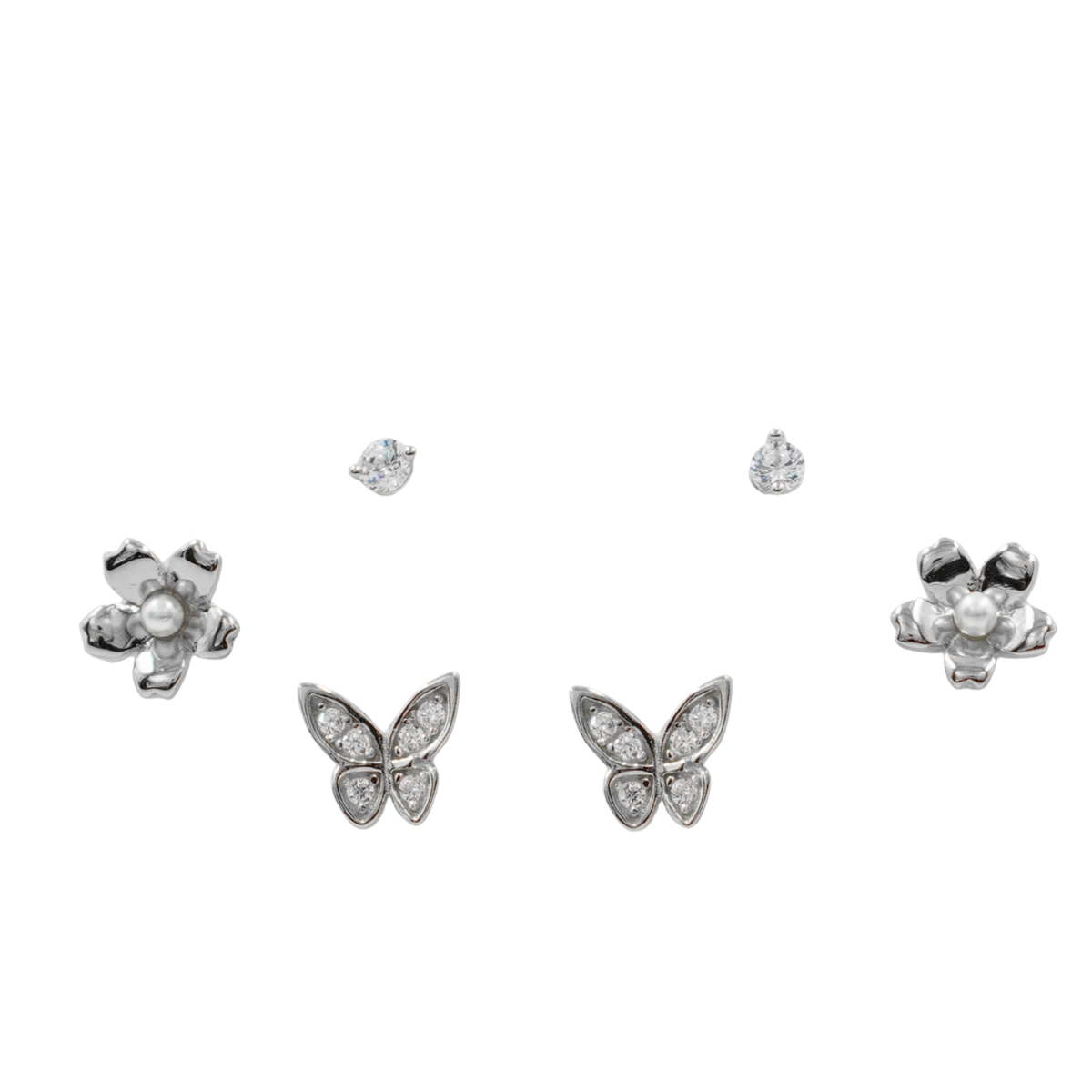 Set Orecchini Argento fiore e farfalla con zirconi – Rodiato