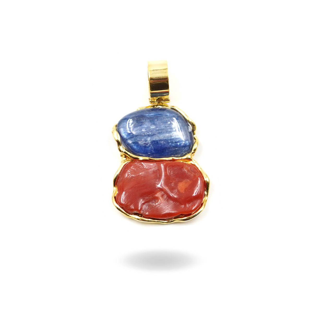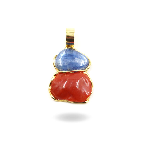Pendente Argento con corallo, cianite – Dorato