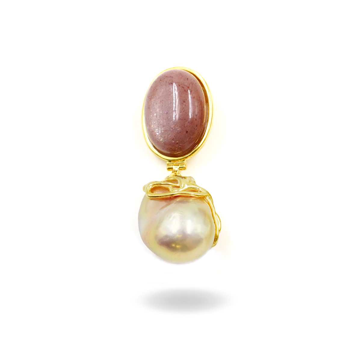 Pendente Argento con perla, pietra di Luna - Dorato - ARG900