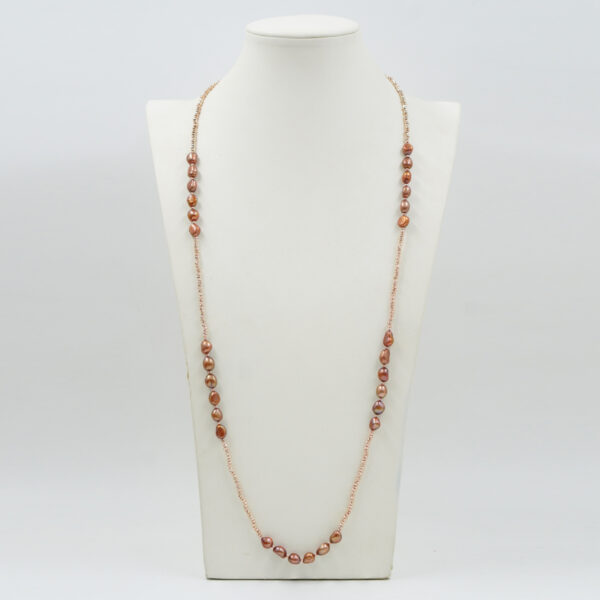 Collana con occhio di gatto marrone, ematite, diaspro imperiale, perla e chiusura in argento 925 – Rosato