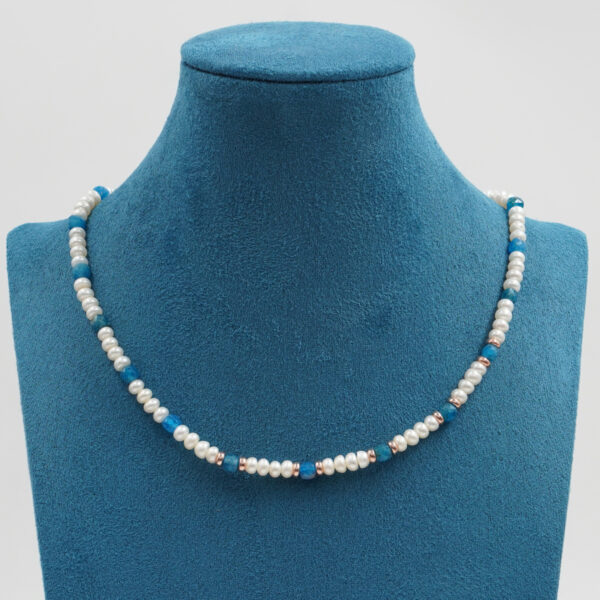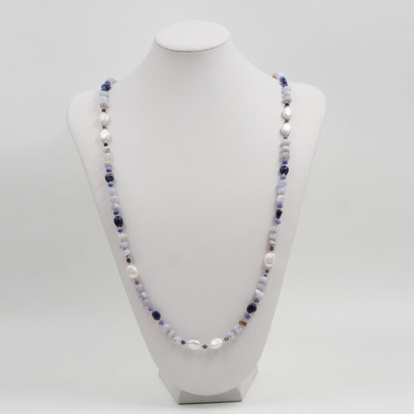 Collana in agata, sodalite, perle, chiusura argento rosè