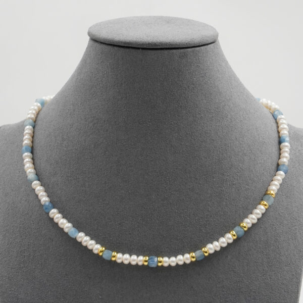 Collana con quarzo spugna azzurro, acquamarina, ematite, chiusura in argento 925 – Rosato